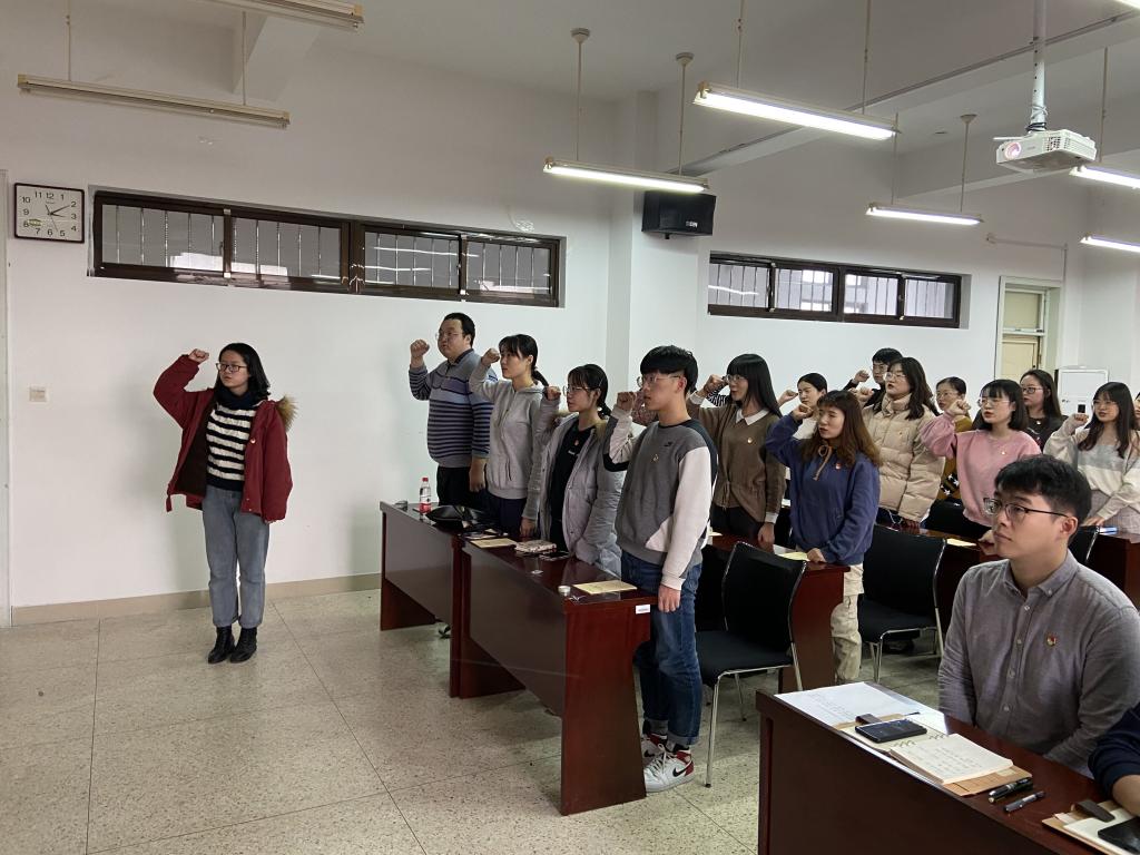 本站讯12月13日下午,pg电子于图东环楼304举行新党员入党宣誓仪式。pg电子党委副书记王鹏飞,辅导员王祎璠、赵德豪、王紫山及全体本科生党员参加了此次仪式。仪式由王祎璠主持。