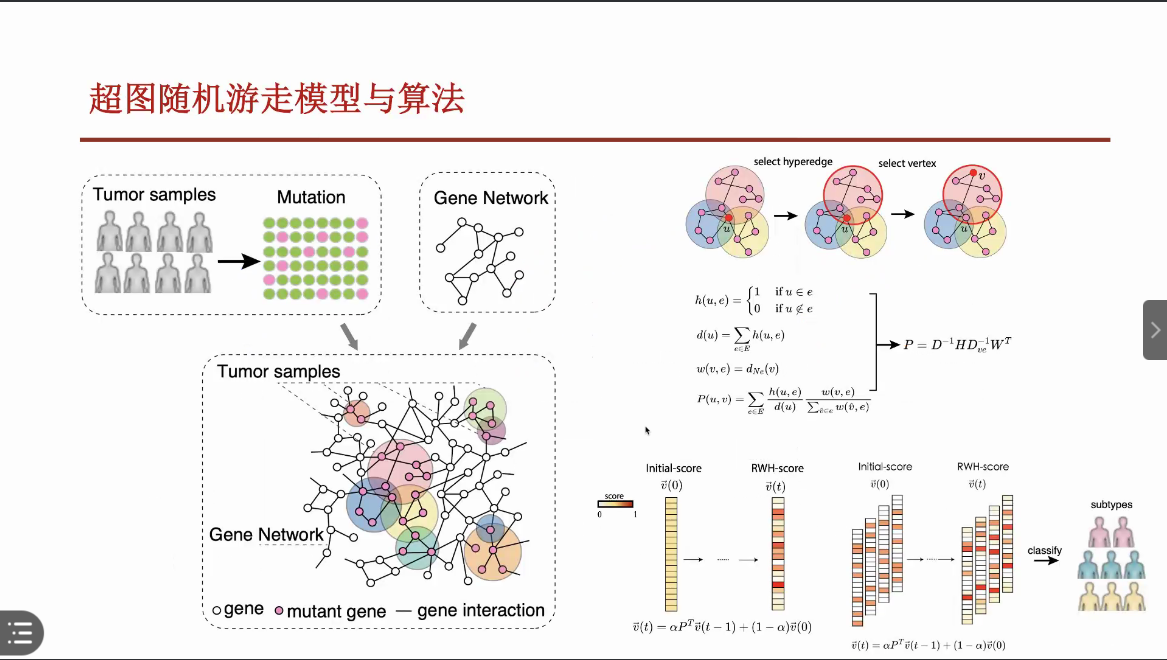 这次报告的主题为“癌症发生和细胞命运决定过程中的几个计算模型”。在报告中,张乃千介绍了癌症发生和细胞命运决定过程中的一系列研究工作,展现了如何针对高通量生物学数据建立系统模型,开发算法实现生物大数据的深度挖掘,探索癌症发生和细胞命运决定过程中的调控机制。报告指出随着高通量测序和基因芯片数据的出现以及计算机技术的发展,通过数据挖掘揭示复杂的生物学奥秘的研究已逐渐拉开帷幕。报告结束后,亓兴勤、柳军涛、穆增超、刘小平等老师针对报告过程中提到的“超图随机游走模型与算法”等相关问题展开了交流讨论。