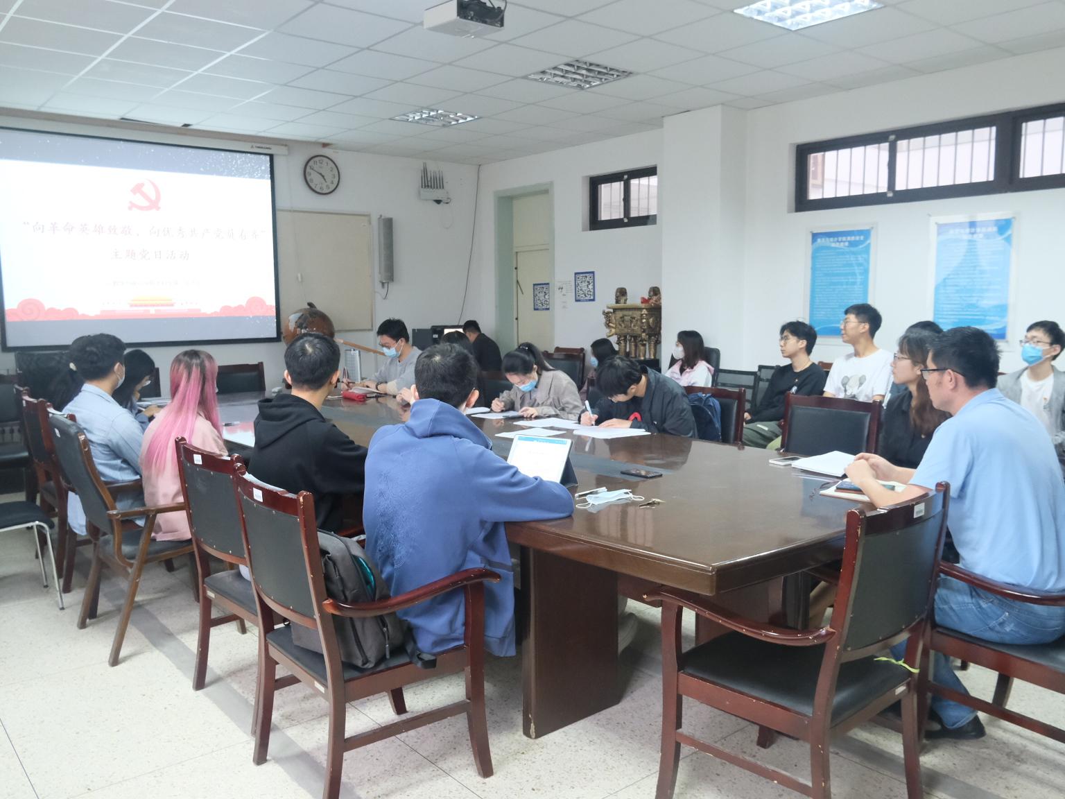 本站讯 10月7日,pg电子官方网站本科生第二党支部于图东环楼208室开展主题为“向革命英雄致敬,向优秀共产党员看齐”的党史学习教育。党支部书记孙磊主持活动,本科生第二党支部全体党员参会。