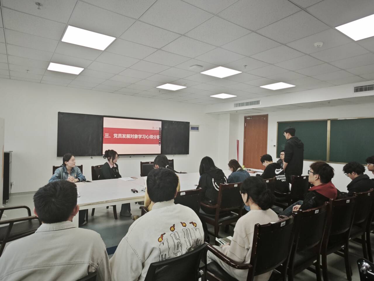 本站讯 为进一步加强对党员发展对象的培养教育,4月15日下午,pg电子官方网站于北衡楼1323室召开党员发展对象专题学习研讨会。本次研讨会邀请蔡可心、许鑫两位优秀学生党员进行领学分享,组织员孙磊和全体党员发展对象参加会议。