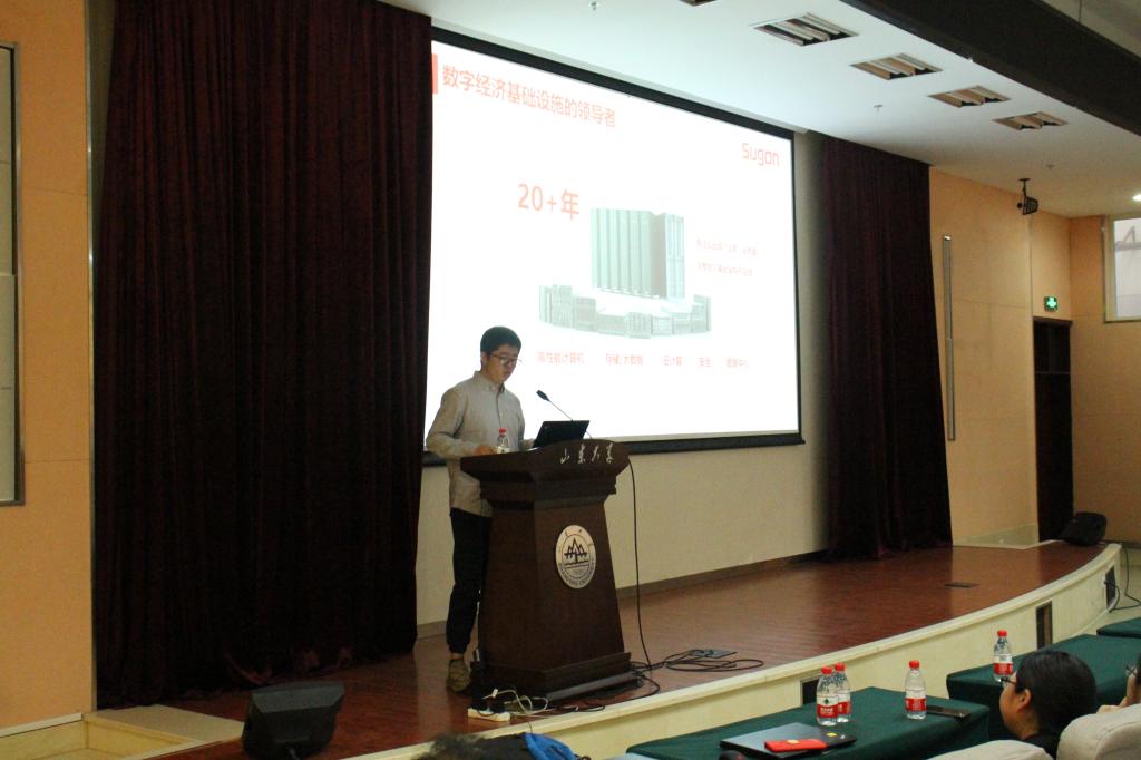 郭亮首先介绍了本次讲座的意义,希望同学们以积极开放的心态,广泛接触学习不同行业的知识,开阔眼界,为自己将来的选择做好储备。李增斌向同学们介绍了中科曙光公司的发展历程、产业布局,并以曙光一号诞生、星云高性能计算机的设计等为例,阐述中科曙光的自主创新能力。向晓芳向同学们分享了中科曙光的公司文化、福利待遇,并从HR的角度给同学们讲解了员工的培训体系以及成长路径。任丹琴向同学们介绍了入职中科曙光所需的专业知识及其应用。她以主流应用软件、函数库的开发和研究、人工智能适配与优化等案例引入了公司系统优化部的工作方向与流程,并向同学们分析了数学专业知识在项目具体流程中的应用。