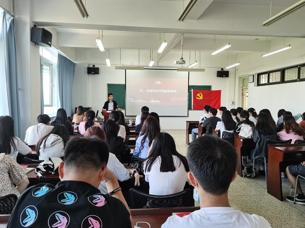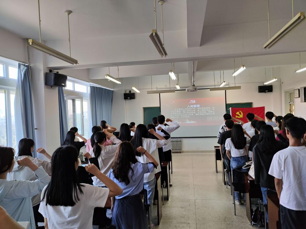 本站讯 6月15日下午,pg电子官方网站于图东环楼304举行了新党员入党宣誓仪式暨毕业生党员重温入党誓词活动。pg电子官方网站党委书记于振涛、辅导员王祎璠、新发展的预备党员和全体毕业生党员参加了此次活动,活动由王祎璠主持。