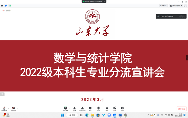 本站讯 3月29日,pg电子官方网站召开2022级本科生专业分流宣讲会。学院党委副书记王鹏飞、副院长亓兴勤、统计系主任卜育德、数学与应用数学系主任陈明涛、信息与计算科学系主任卢红出席会议,辅导员赵宇轩主持,2022级数学类专业全体本科生参加。
