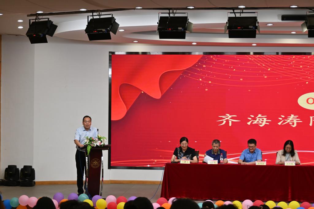 在庄严嘹亮的国歌声中,毕业典礼拉开序幕。常务副院长齐海涛致辞,他代表学院对2023届毕业生顺利完成学业表示祝贺,肯定了同学们在过去四年取得的成就,他对毕业生送上三点希望与祝福:一是继续前行,勇拓佳境,响应党的号召,建功立业,在科学研究前沿做出自己的贡献,留下自己的印记;二是要甘于奉献,报效祖国,承担时代重任,自觉把个人努力汇聚到民族伟大复兴的洪流中;三是要不忘初心,常怀敬畏,正确对待成功和挫折,正确对待自己和社会,把潜能发挥到最大,让生命更有意义、更有价值。