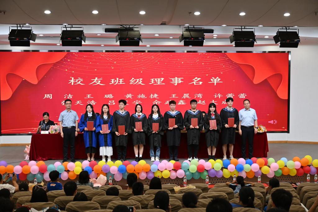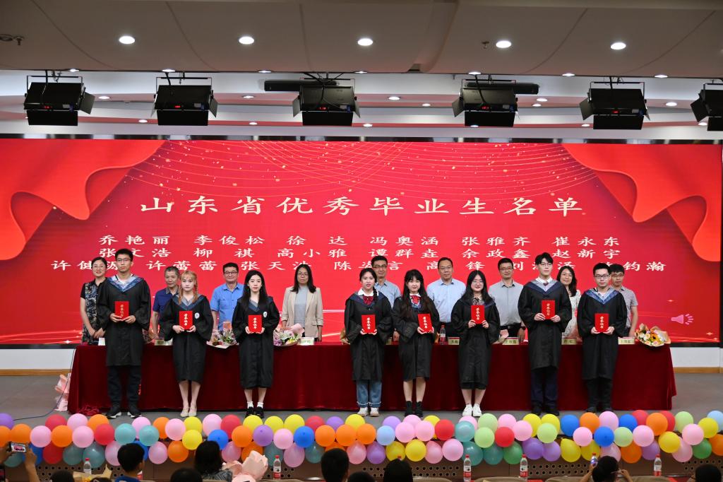 典礼上,于振涛宣读了山东省优秀毕业生名单,学院领导、教师代表为省级优秀毕业生、校级优秀毕业生颁发荣誉证书。于振涛、齐海涛为2023届校友班级理事颁发了聘书。典礼在pg电子官方网站校歌中落下了帷幕。