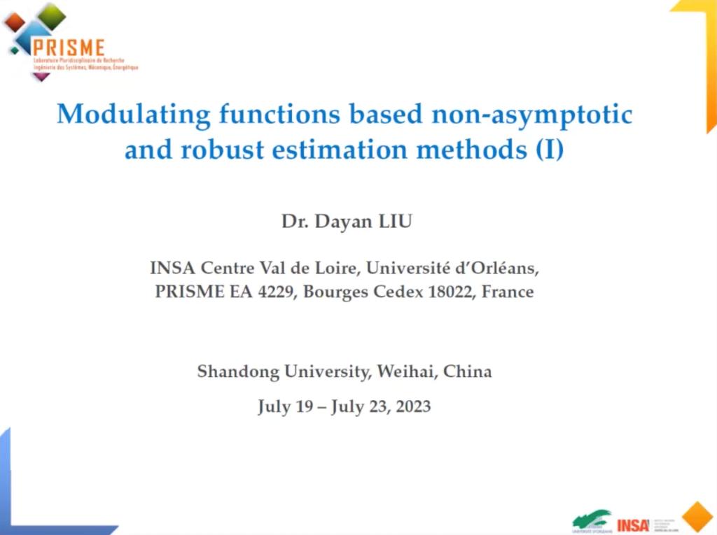 《非渐进代数估计方法及其在微分器设计中的应用》由齐海涛教授作为课程负责人,由来自法国中部卢瓦尔河谷国立应用科学学院的刘大研教授主讲。本课程主要介绍两种非渐进代数估计方法及其在微分器设计中的应用,并介绍学科前沿分数阶微积分相关知识。通过本课程的学习,旨在培养学生的国际学术视野和科研能力,提升学生运用所学知识解决相关领域实际问题的能力。
