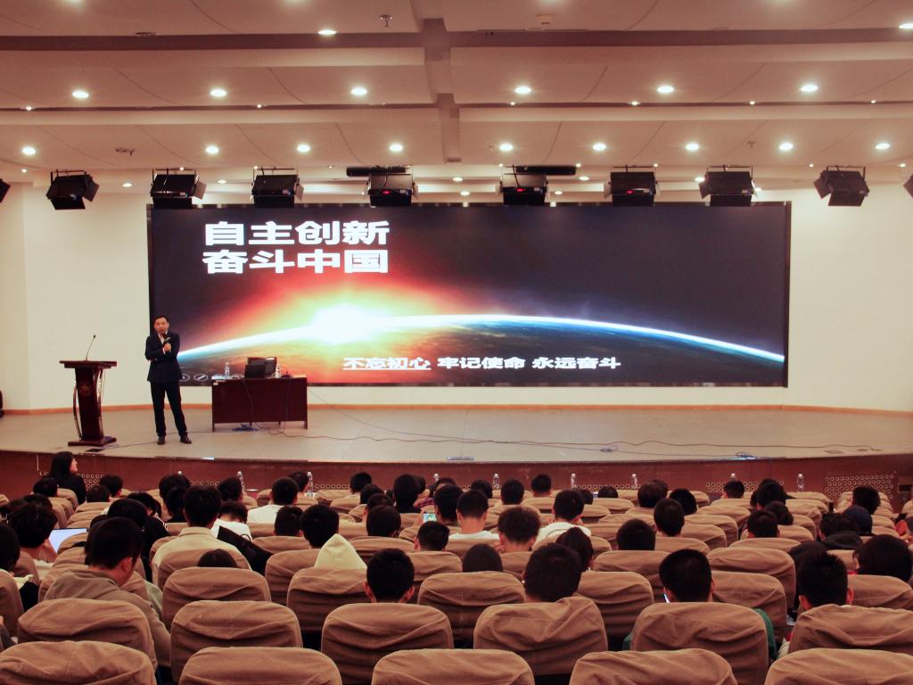肖忠野以信息技术产业公司发展现状为切入点,从“国际形势复杂严峻”“科技公司历经挫折”“信息产业任重道远”三个方面梳理了国内信息产业发展历程。他从历史的发展、大国间的较量、当代年轻人的发展需求入手分析,用生动的案例让师生意识到发展自主可控的信息技术产业迫在眉睫、刻不容缓。讲座中,他以芯片产业为例,详细分析了什么是“卡脖子”问题,结合中科曙光集团的发展历程,探讨了信息技术产业未来的发展趋势和形势。肖忠野激励师生,要以国家需求为己任,勇担历史使命,锤炼意志品格,丰富知识涵养,为国家科技创新、社会繁荣发展不断研究学习、打下坚实基础。