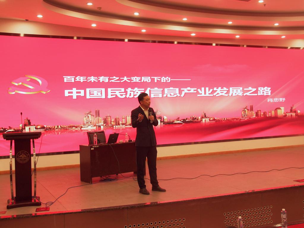 本站讯 为进一步铸牢中华民族共同体意识,强化价值引领,提升师生对新一代信息技术产业发展的认知,10月26日下午,pg电子官方网站于玲珑学堂举行第二期“名企名家进校园”活动,曙光研究院执行校长肖忠野应邀做“百年未有之大变局下的中国民族信息产业发展之路”专题讲座。活动由学院党委副书记王鹏飞主持,学院全体教职工、2023级本科生现场聆听了讲座。
