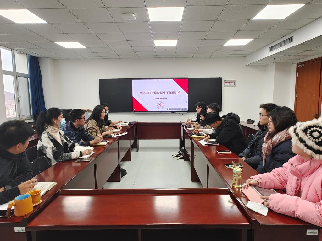 会议上,王鹏飞总结分析了学院在过去一年学生工作领域探索实践的思路、举措和取得的成绩。她指出,过去一年学院“五位一体”的生涯教育模式逐渐完善,搭建的“天南地北数学人”“名企名家进校园”“励志周末”“师者漫谈”生涯育人平台为学生提供了全方位的生涯指导;导学+助学结合的学风建设初见成效,从行为习惯养成“先锋行”到“积分筑梦”学业帮扶,形式多样又贴合学生需求的活动,营造了良好的学院学习氛围,提高了学业成绩;“课程+辅导+讲座+社团+竞赛”全方位的创新创业教育已经全面展开,学院在创新创业上从质量和数量都有了较大的突破;“五育并举”建设渐成体系,文体活动中数学特色不断彰显、实践育人效果不断提升;师生沟通机制畅通,搭建的“书记院长会客室”“生涯咨询室”“数语•倾听坊”一体两端三空间沟通渠道及本科生全员导师制不断满足学生的沟通需求;等等。