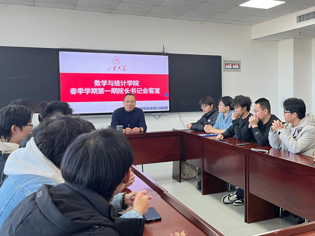 本站讯 3月8日下午,pg电子官方网站举办2024年春季学期第一期“院长书记会客室”。学院常务副院长齐海涛与16名本科生代表相聚北衡楼1421室,一起畅谈“修身”“治学”,充分了解学生发展诉求,以师长的关怀,勉励同学们做“知数达理,敦学求真”的山大数学人。辅导员赵宇轩陪同参加活动。
