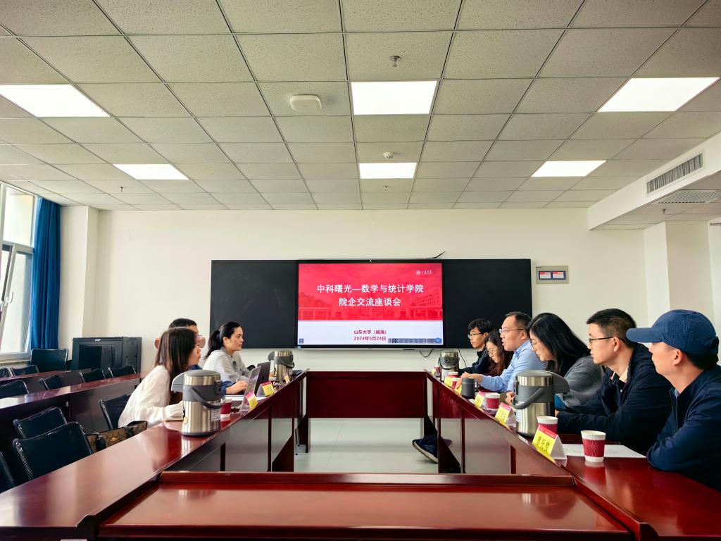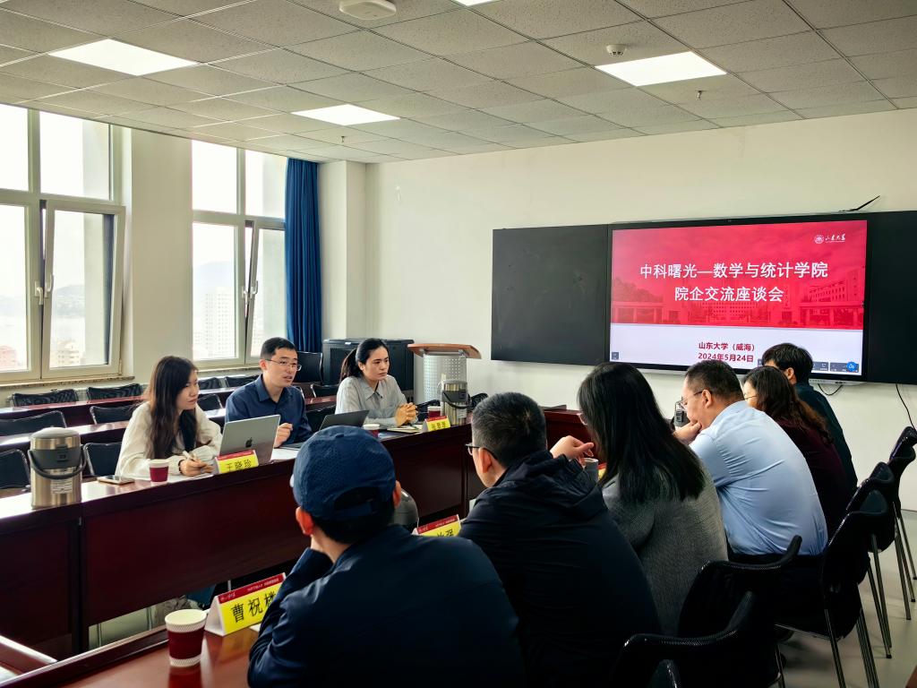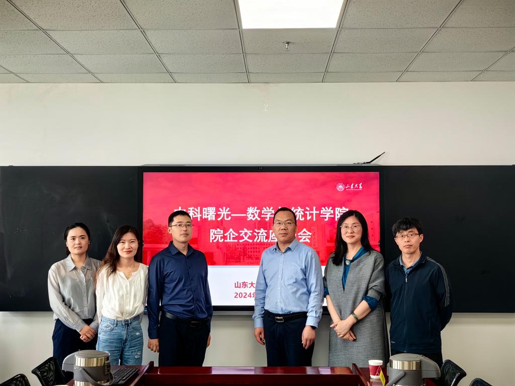 本站讯 5月24日上午,中科曙光高端计算产品事业部总工程师卜景德,工程师王晓珍、张翠翠一行受邀来访pg电子官方网站,就产学研深度融合进行交流座谈。pg电子官方网站常务副院长齐海涛、副院长亓兴勤、院长助理王效强、统计系主任卜育德和教师曹祝楼参加座谈,座谈由学院党委副书记王鹏飞主持。