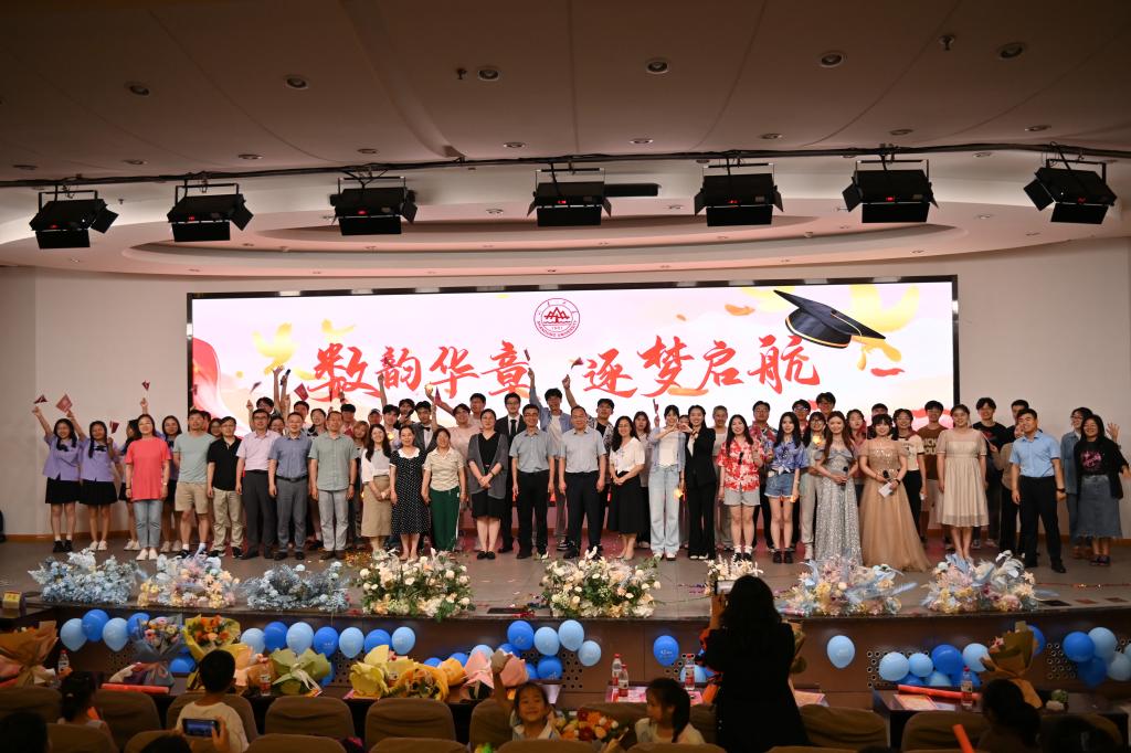 本站讯 6月21日晚,pg电子官方网站于玲珑学堂举办了“数韵华章,逐梦启航”2024届毕业生联欢晚会。学院党政领导、部分教师和2024届全体毕业生共同到场观看了晚会。
