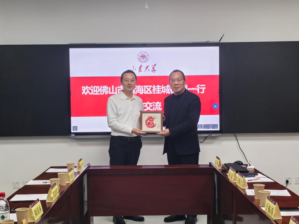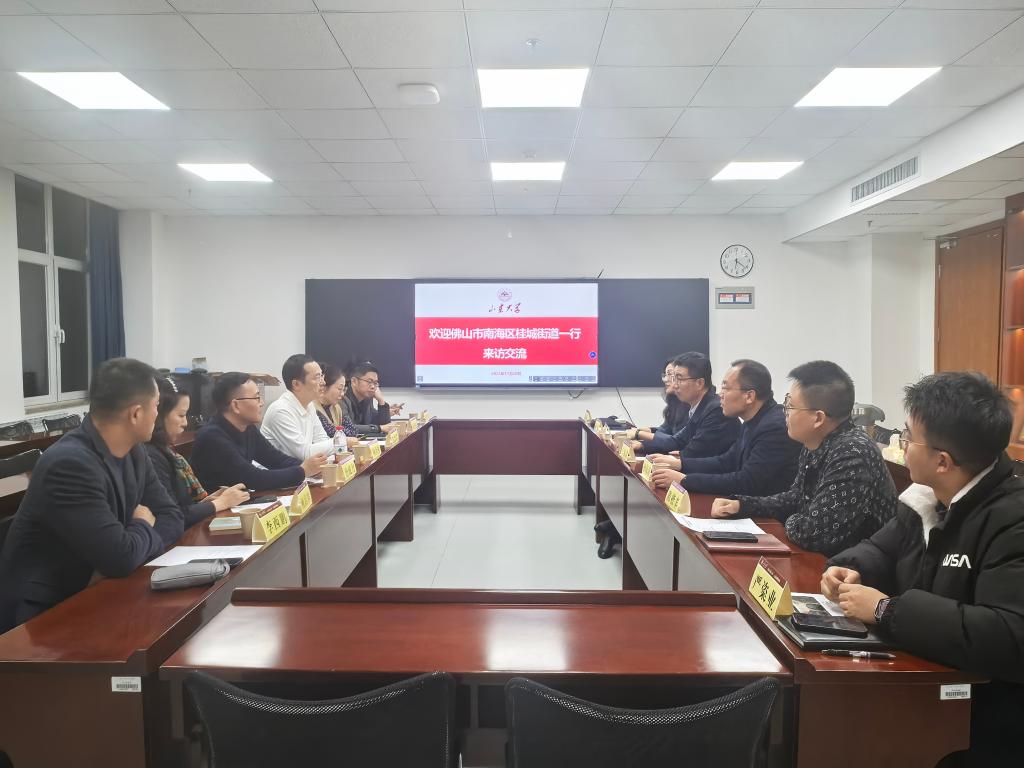 11月20日下午,广东省佛山市南海区桂城街道党工委副书记仰国林、桂城街道教育党委副书记冼思琪一行来访pg电子,就深化校地合作进行交流座谈。校区党工委副书记、pg电子官方网站党委书记于振涛,pg电子官方网站常务副院长齐海涛在北衡楼1421会见客人。学院党委副书记王鹏飞主持座谈会。