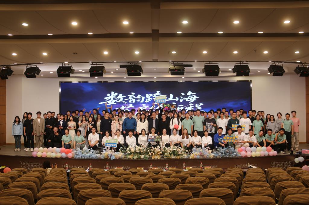 第三篇章“共赴启新程”展望了未来的学习生活与梦想的启航。数学类4班带来的《趣味配音》妙趣横生,展现了语言与创意的魅力,数据科学班歌曲表演《不为谁作的歌》深情动听,触动心灵,脱口秀《健身房里那些事儿》以轻松口吻讲述校园生活点滴,数学类1班话剧《别被套路了》寓教于乐,提醒新生防范风险,数学类2班歌唱剧目《淋雨一直走》以动人旋律传递了不畏风雨、勇敢前行的信念。最终,风采晚会在数理音籁合唱团与观众们共同高歌的《我爱你中国》中深情落下帷幕,激昂的歌声抒发了深厚的爱国情怀。