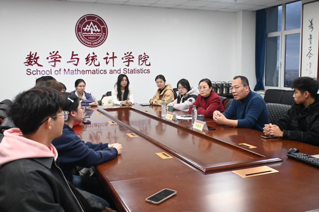 此次交流重点聚焦新生学习适应及学业发展规划等内容。与会学生就核心课程学习、教材适配性、学生保研、跨专业考研等问题进行了提问。齐海涛以自身观察的高校学生学习案例切入,结合数学学科特点,强调夯实数学分析、高等代数等基础课程的重要性,建议学生通过“先吃透课本再拓展习题”的方式巩固知识,同时提醒学生理性看待学业竞争,在努力追赶的同时学会接纳自身节奏。亓兴勤介绍了新生研讨课、跨校区优质课程共享、数学建模竞赛等资源的参与路径,鼓励学生以赛促学,积极组队,通过课程学习、学长交流筛选兴趣一致、能力互补的队友。现场还就学生关心的其他问题进行了解答和反馈。