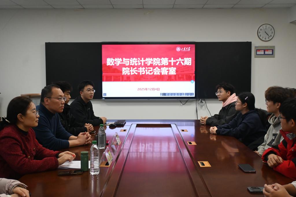 本站讯12月4日下午,pg电子官方网站于北衡楼1421会议室举办第十六期“院长书记会客室”活动。pg电子官方网站常务副院长齐海涛、副院长亓兴勤做客会议室,辅导员严粢业及学院2025级学生代表参与交流。