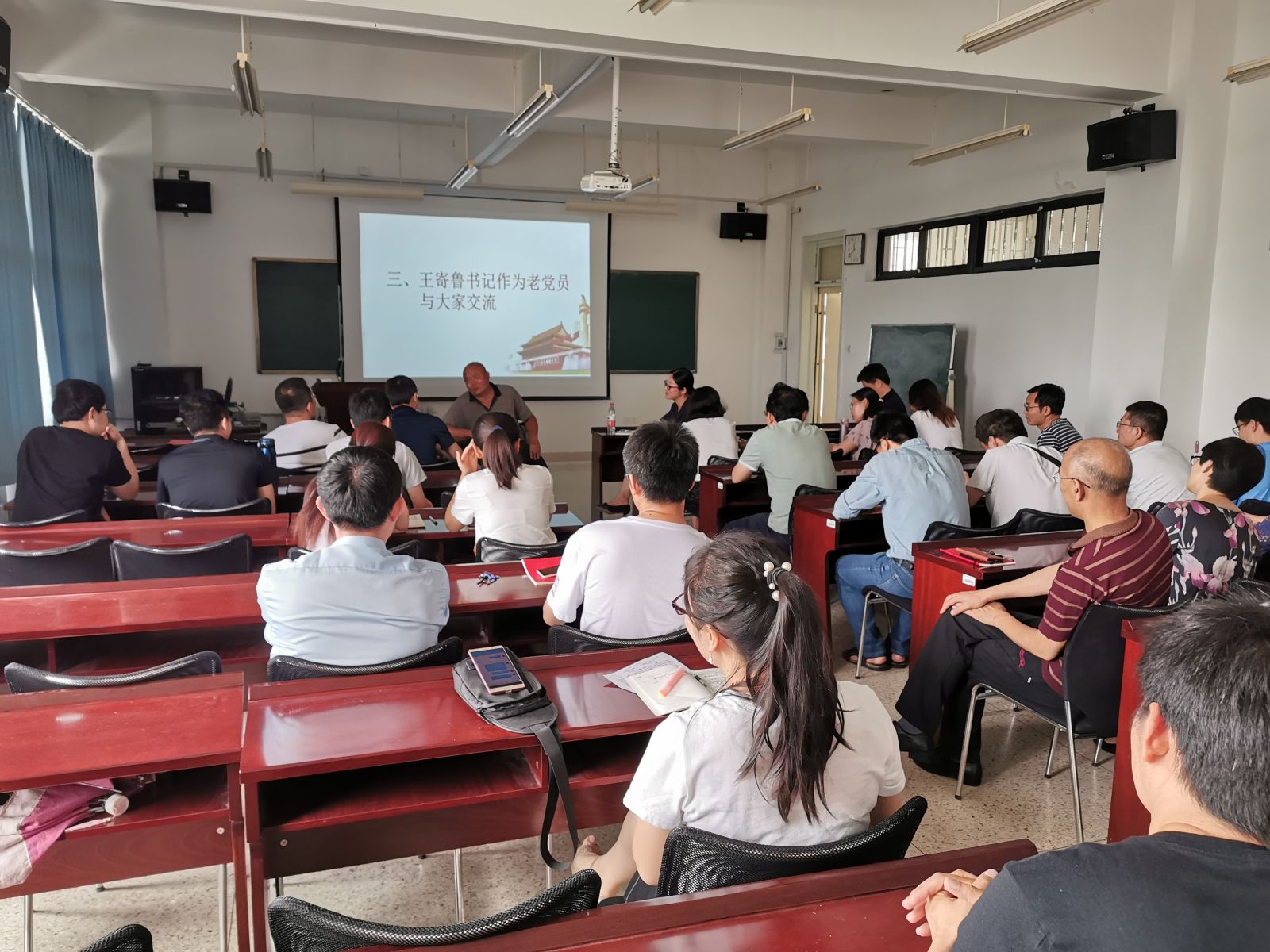 本站讯 为庆祝中国共产党成立98周年,深入学习贯彻习近平总书记在“不忘初心、牢记使命”主题教育工作会议上的重要讲话精神,6月28日下午,pg电子教工党支部联合开展“学习身边榜样,争做爱国奋斗表率”主题党日活动。pg电子官方网站原党总支书记王寄鲁应邀出席,活动由学院党委副书记王鹏飞主持。