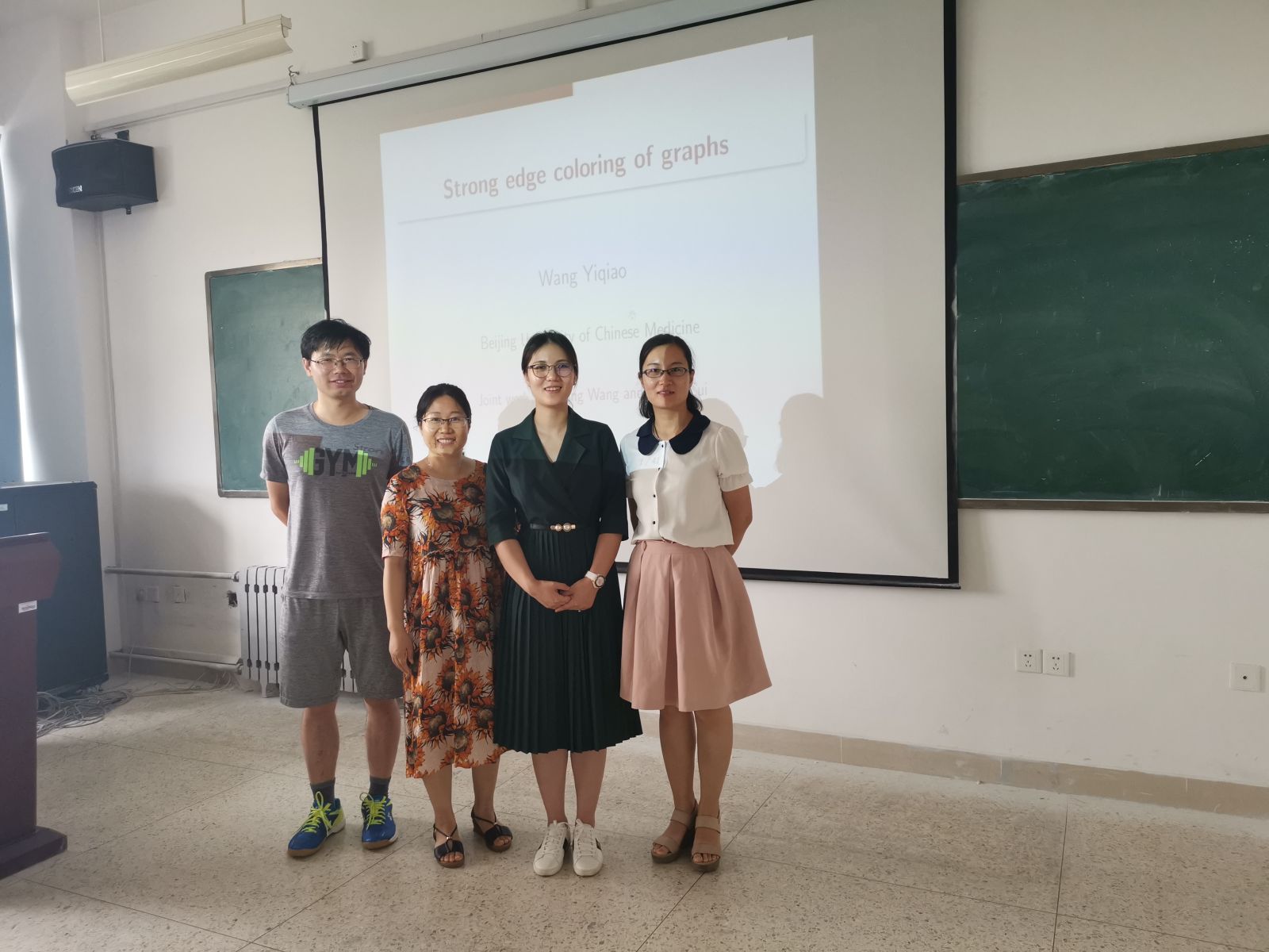 本站讯,7月28日,北京中医药大学副教授王艺桥受邀访问pg电子,并展开题为“Strong Edge Coloring of Graphs”的学术报告。pg电子部分教师、学生参加了此次报告会。学院亓兴勤教授主持报告。