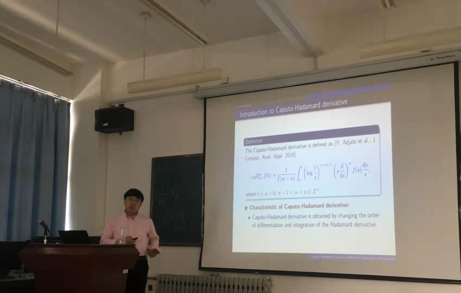 本站讯 8月16日,上海大学李常品教授应邀来pg电子进行学术交流,并在学院304报告厅做了题为“Caputo-Hadamard fractional differential equations: analysis and computation”的学术报告,学院部分师生聆听了报告。
