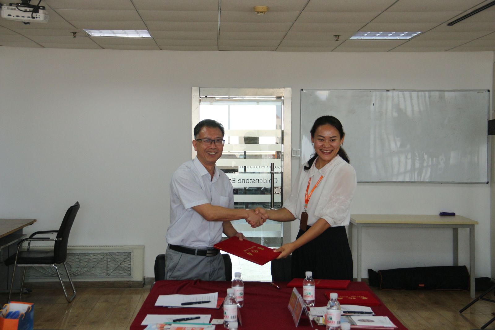 7月25日下午,綦建刚一行走访至青岛金石教育科技股份有限公司,与公司人力资源经理王炎、人力资源部王海燕等人进行了座谈交流。在座谈中,pg电子详细了解了金石教育的发展规模、企业文化以及公司的招聘政策、人才培养模式、员工薪酬待遇等情况。同时,双方就未来的合作方向和合作方案进行了深入交流,达成共识,并签署就业创业实践基地合作协议书。在金石教育工作的pg电子2015届毕业生辛举随后加入座谈,辛举表示自己的成功得益于学校和老师们的栽培,并十分乐意回访母校,在力所能及的范围内为母校贡献自己的一份力量。