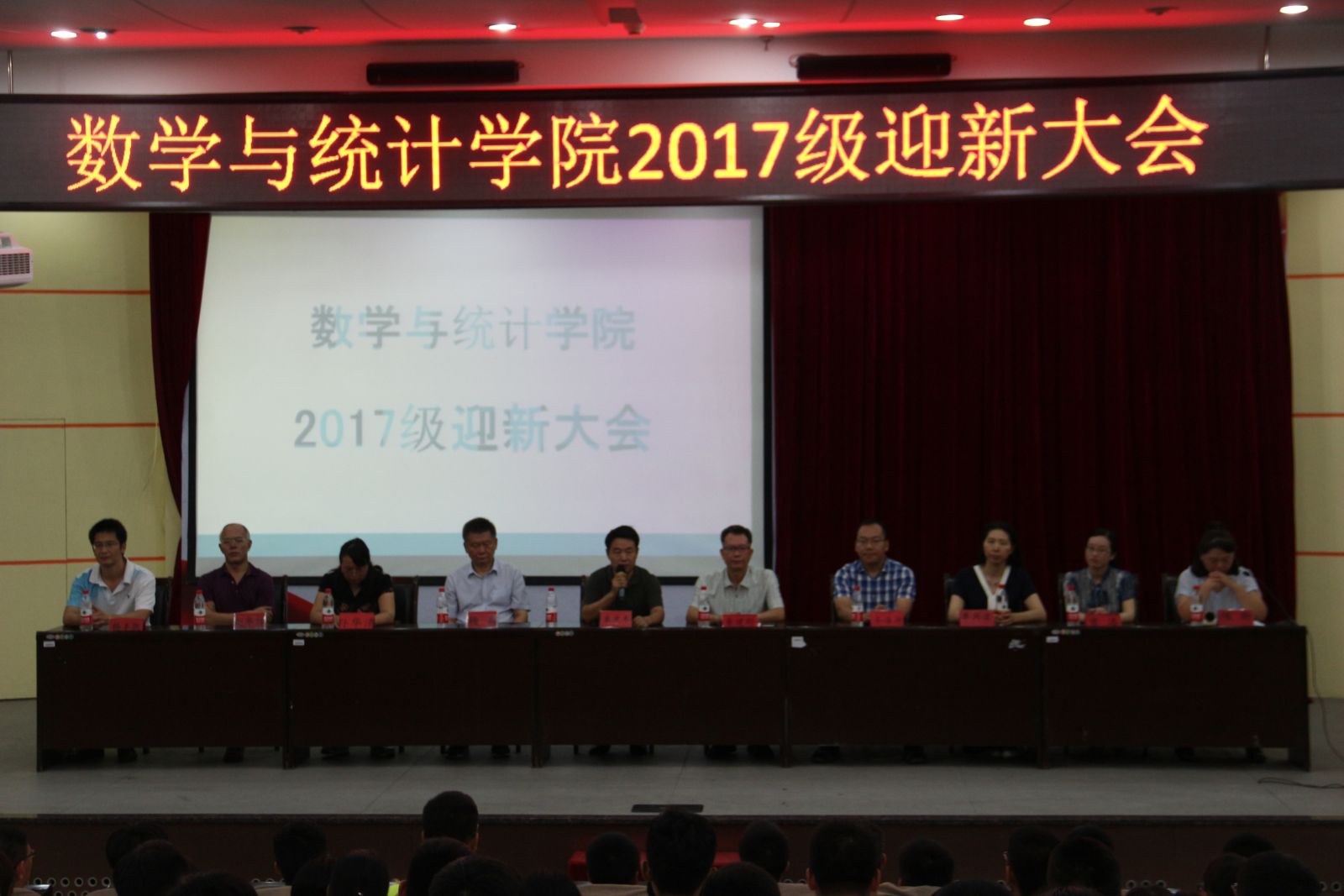 本站讯 2017年9月10日,pg电子于玲珑学堂举办2017级迎新大会。学院常务副院长綦建刚,党总支书记栗庆冬,副院长齐海涛、杨兵、党组织副书记单丙波,各系主任和辅导员以及2017级全体新生参加了本次大会。会议由2017级新生辅导员陈昕主持。
