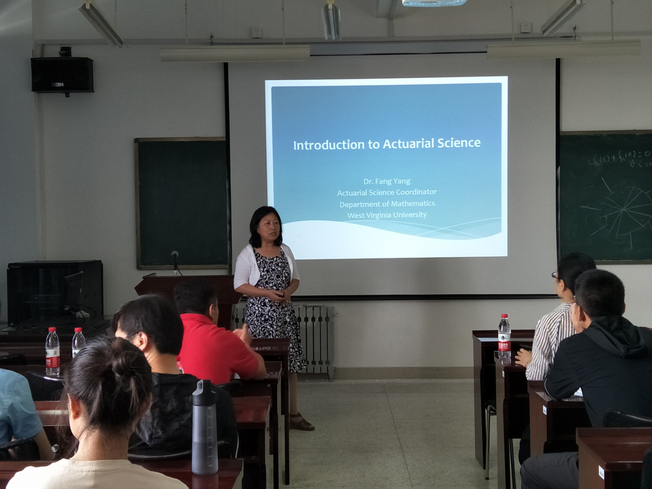 本站讯 2018年6月15日,美国西弗吉尼亚大学(West Virginia University, USA)数学系副教授杨芳应邀访问pg电子,开展了题为“Introduction to Actuarial Science”的学术报告,学院部分师生聆听了报告。