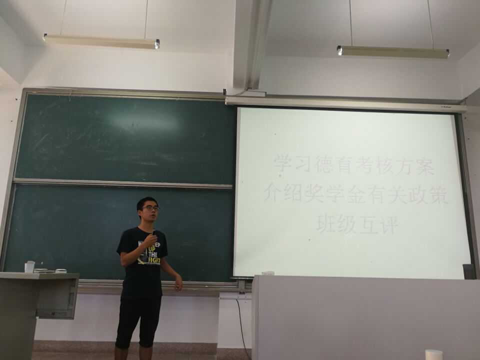 首先,班长夏炳权进行讲话,他说明,综合素质测评和德育考核对以后的奖学金评定和研究生推免等有很大影响。接着,他带领全班同学详细地学习了《pg电子官方网站本科生德育素质评价办法》、《pg电子官方网站本科生特长奖学金评定办法》两个文件,对文件中需要解释的部分做了具体的说明,对重点部分做了强调。团支书张驰同学带领同学们学习发展性素质评分表格的具体填写方式,张驰提醒同学们要在7月21日之前全部上交表格。最后,班长和团支书同学留下了全体班委、宿舍舍长和学生会干事,进行班级同学贫困认定的审核。这些同学秉持公平公正、认真仔细的态度审核了贫困同学上交的表格,并发表了自己的看法。本次班会圆满结束。
