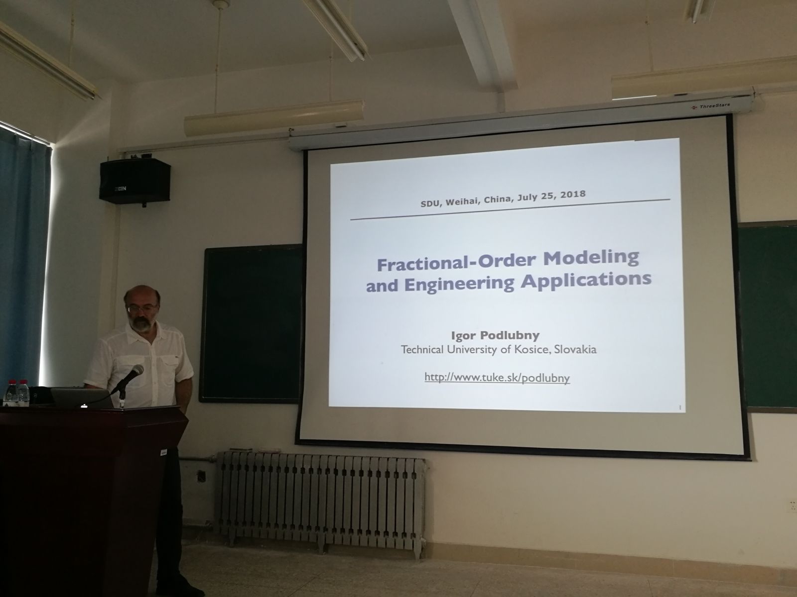 本站讯 7月21日-7月25日,斯洛伐克共和国科希策技术大学伯格学院Igor Podlubny教授应邀来pg电子进行学术交流,并在学院学术报告厅分别作了题为“An Overview of Fractional Order Calculus: History, Theory, Applications”、“Matrix approach to numerical fractional calculus”和“Fractional-Order Modeling and Engineering Applications”三场学术报告,学院部分师生聆听了报告。