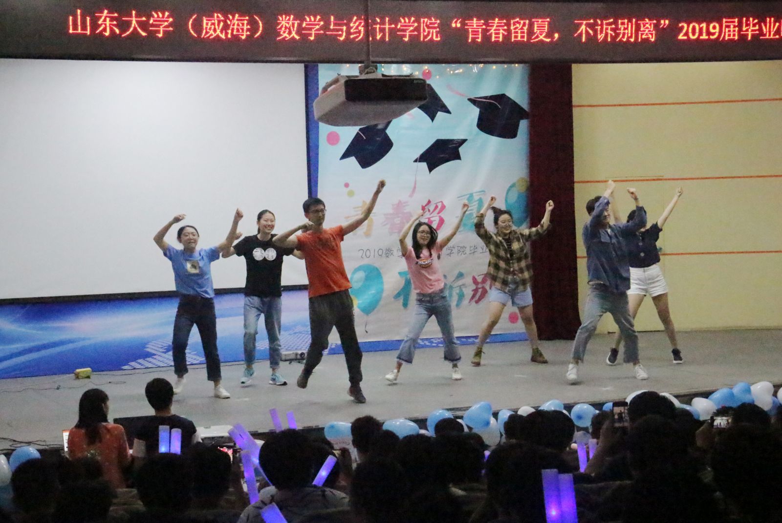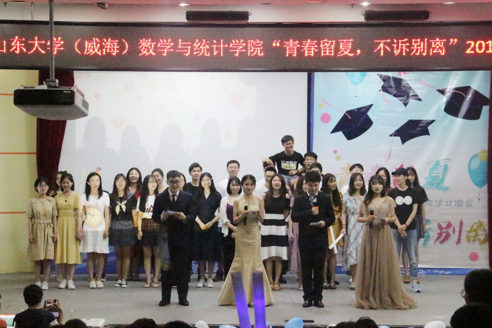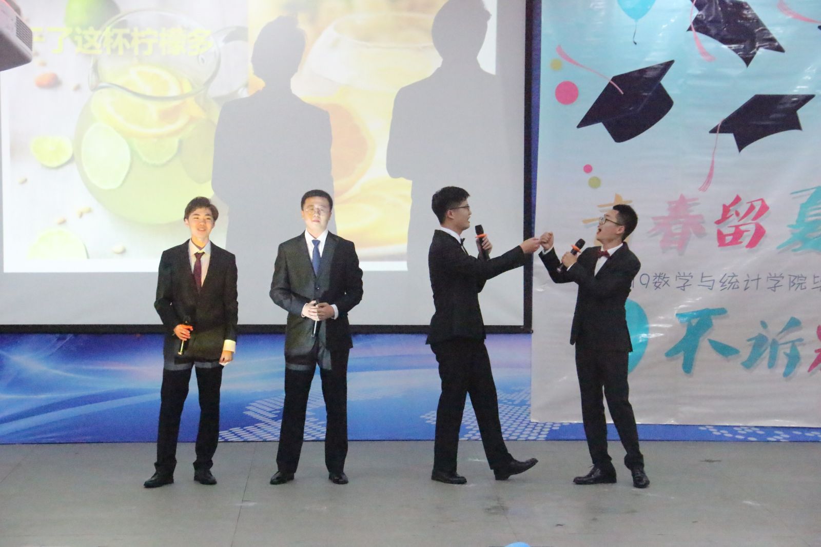 晚会伊始,学院领导以及各位老师通过一段视频对毕业生在过去四年里的成长给予肯定,并送上了最诚挚的期许与祝福。毕业晚会共分为“忆·风华正茂”、“品·花开十里”和“望·似水流年”三个篇章。开场舞“kill this love”令人热血沸腾,拉开晚会序幕。在“忆·风华正茂”的篇章中,影子舞《山大记忆》创意独特,带大家一起回忆温暖的大学时光;脱口秀《数院巅峰之夜》风趣幽默,展现数院学子风采;学院教师代表的合唱《明天会更好》悠扬动听,寄托了老师对毕业生的满满祝福。表演后在《同一首歌》的伴奏下,2019届同学为全体老师送上鲜花表达感恩之情,也将晚会推向了高潮。第二篇章“品·花开十里”,拉丁舞和现代舞的串烧舞蹈“wonderful”带动全场气氛,台下掌声阵阵;歌曲串烧展示了同学们的青春洋溢;辅导员孙磊和王祎璠即兴演唱的歌曲《栀子花开》带来无限温情;创意节目“小人舞”和歌曲《柠檬精之歌》幽默诙谐,观众欢呼不断。在第三篇章,歌曲《男孩》送上听觉盛宴,大家沉浸其中;朗诵《青春纪念册》情感真挚,唤起了毕业生大学四年的无限回忆,现场很多同学为之动容落泪。最后,本次毕业晚会在深情的合唱《不说再见》中圆满落幕。