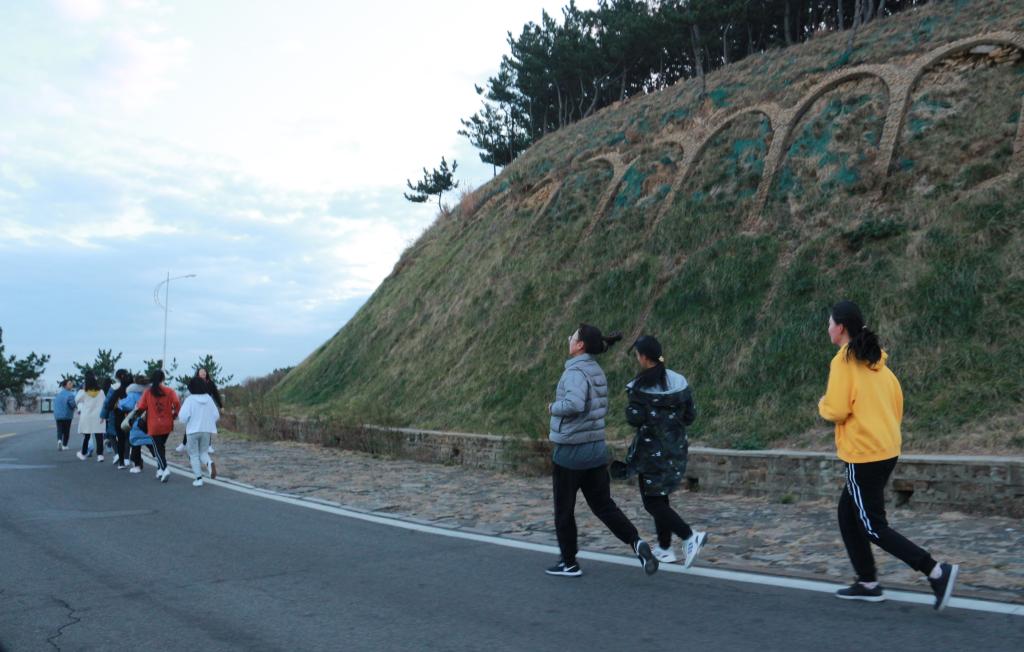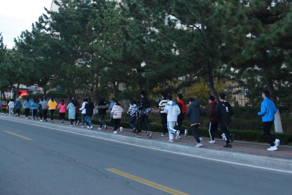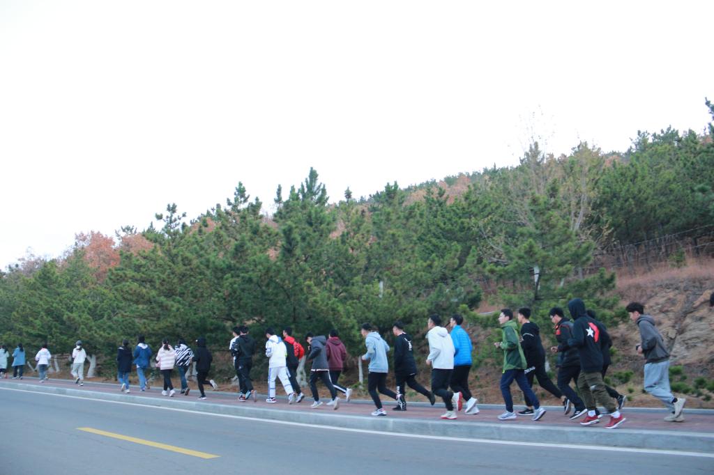 11月15日与11月22日清晨六点半,晨跑小队于蒙牛广场集合完毕。各部门部长统计核实好人数后,全体成员从学校西门出发,沿环海路奔跑,最后由北门返校。虽然两日天气比较寒冷,月亮还高悬天空,风也“咄咄逼人”,但是小队成员都面带笑容,满怀热情地参加了两次晨跑活动。途中,小队正面海风的阻挠,与路边树木相伴,与晨曦海浪为伍,迎接着太阳升起,井然有序,整齐且坚定地跑过环海路。成员们团结一致,互相帮助,心系彼此,确保每个学生不掉队、安全返校。成员彼此互相激励,带着良好的精神面貌,坚持着跑完全程,在清晨的初升阳光的照耀下返校。