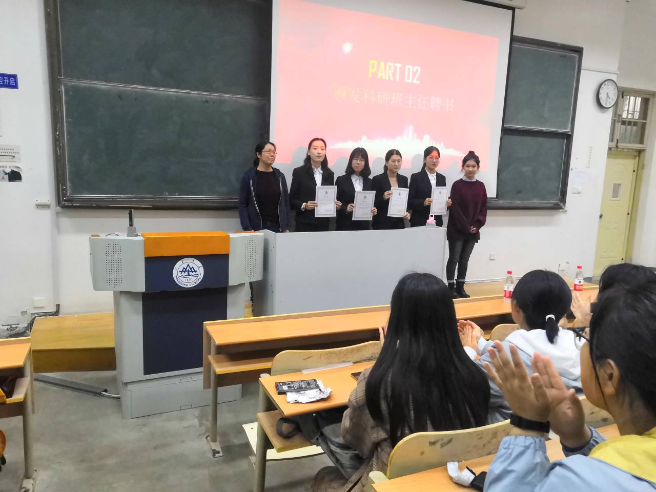 本站讯  1031日下午,pg电子于图东教学楼122教室举办携手朋辈辅导,传承创新精神第十三届科研班主任受聘仪式,pg电子数学与应用数学系主任孙庆峰和辅导员古钰作为嘉宾出席活动,第十三届科研班主任代表,2019级部分新生参加了本次受聘仪式。
