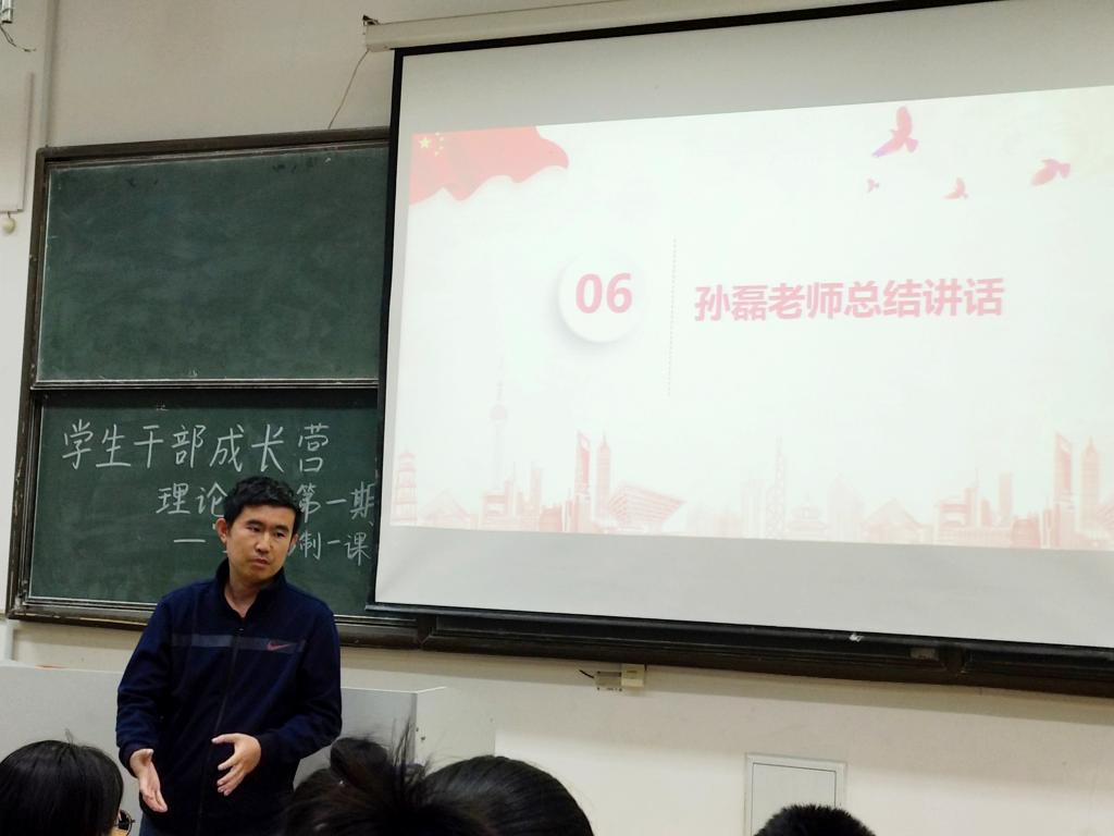 本站讯 10月28日晚,“学生干部成长营”理论学习第一期在图东教学楼122室举行。学院团委书记孙磊出席本次活动,2017、2018级全体团支部委员以及2019级全体班委参加本次活动。活动由班团建设部部长董珂主持。