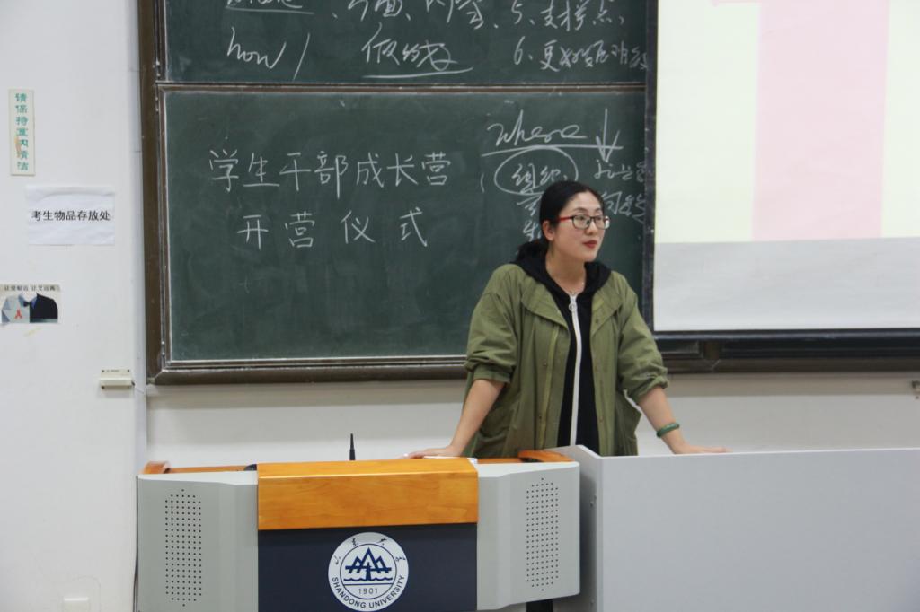 会上,王鹏飞为开营仪式致辞,她以“4W”理念为思路,就学生干部的定义、初衷、工作内容以及如何成为一名合格的学生干部这四个方面进行深入剖析,对营员提出新的要求,希望新营员可以起到先锋引领、模范带头作用,更好地为同学和班级服务。随后,班团建设部部长董珂从思想引领、理论学习、经验交流、实践提升四个方面具体阐述了本期“学生干部成长营”的工作安排并介绍了相关要求和考核办法。“学生干部成长营”优秀学生干部代表魏佳佳和新营员代表许蕾蕾发言。魏佳佳回顾自己在学生干部这条道路上的成长,提出学生干部应具有的工作态度,同时她希望新营员们可以充分发挥集体的力量,让自己更好的成长、让集体更好的发展。许蕾蕾就自己对学生干部的理解表达了自己对学生干部成长营生活的期待和与营员共同进步的希望。