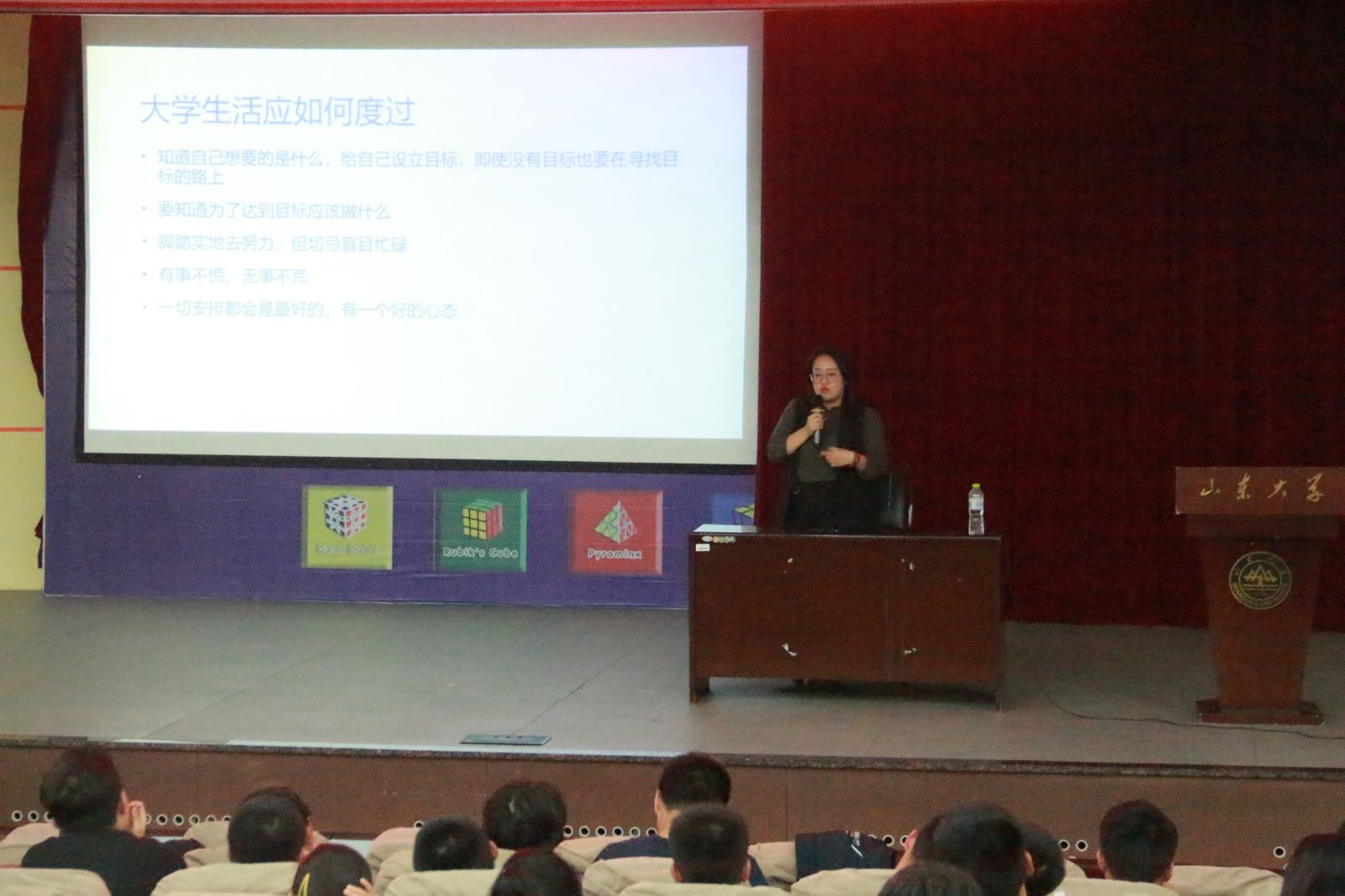 会上,pg电子官方网站2012级优秀毕业生周力以“系好第一粒扣子”为主题进行经验分享报告,并从她的大学经历、大学生活应如何度过、金融行业简介与数学+金融的发展方向共四个方面分享了她从进入大学到工作六年以来的心路历程。在分享大学经历与生活经验中,周力着重说明了她对自己大四学年的学习工作生活在之后不同时期的不同的理解与感悟,并以“一切都是最好的安排”来评价自己的大学生活经历。在提问环节,各年级学生踊跃提出问题,周力从不同角度、不同方面均进行了详细的讲解,并给出了她的指导与建议,现场气氛热烈。最后,孙磊进行总结发言,希望同学们有规划、有目标,充实过好大学生活。