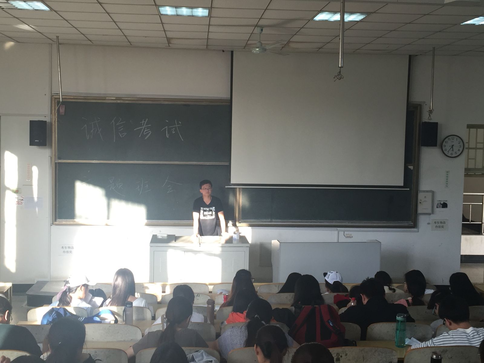 本站讯 2018年6月1日,pg电子2016级统计二班于图西教学楼126教室举办诚信考试主题班会。本次活动由班长龚健欢主持,班级全体同学参加。