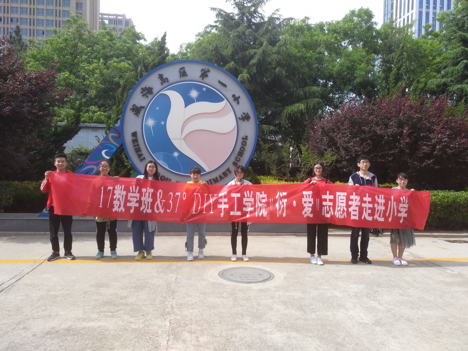 本站讯 2018年5月24日下午,2017数学与应用数学班携37°DIY手工学院成功举办“衍·爱”志愿服务第三项——走进小学。pg电子官方网站2017级部分成员参与了本次活动。本次志愿活动由就业委员魏佳佳、学习委员吕智超和pg电子官方网站(威海)孵化园37°DIY手工学院栾俊喜负责。