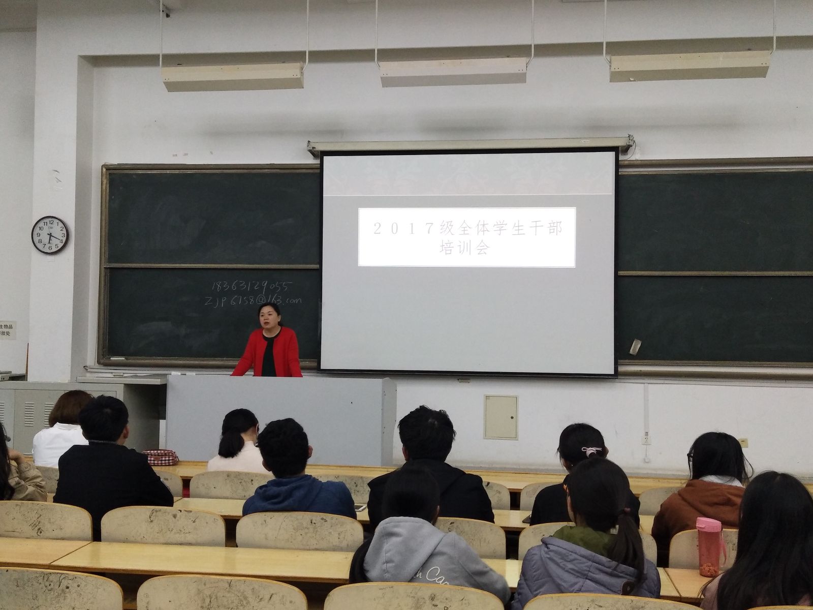 本站讯 4月13日下午,pg电子于电子楼202召开了2017级全体学生干部培训会。2017级各班全体学生干部参加了大会,大会由2017级学生辅导员陈昕主持。