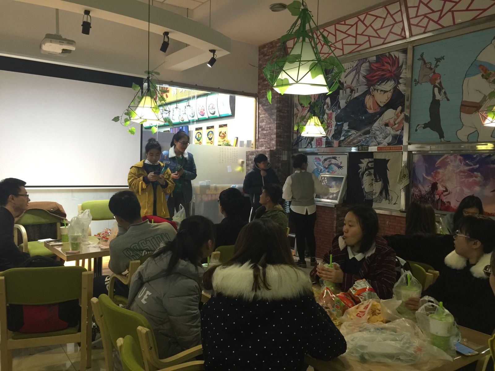 晚七点整,班级全体同学在“一食一聚”活动厅集合,活动准时开始。本次心理班会分为四个部分。首先,曾德玲为同学们详细地介绍了本次活动的流程和内容。随后,进入集体游戏环节。第一个游戏为“击鼓传花”,按照游戏规定,喊停时香包在手的同学要上台表演才艺,整个游戏过程紧张而兴奋,被罚同学的表演也给大家带来耳目一新的感受。第二个游戏为“大风吹”,输掉的同学选择真心话或大冒险,同学们的想法丰富搞怪,活动厅内不时发出阵阵爆笑。结束了集体游戏环节,紧接着是玩桌游部分。一起经历过狼人杀的烧脑,德国心脏病的刺激,桌面足球的灵活后,同学们之间的关系更加亲密。最后,王祎晨组织发放了写有上一次心理班会对自己未来期望的明信片,并给大家发放了新的明信片重新书写自己的心里话,这次的明信片将在下一次心理班会上再次发放。至此本次心理班会在大家的欢乐与期许中落下帷幕。