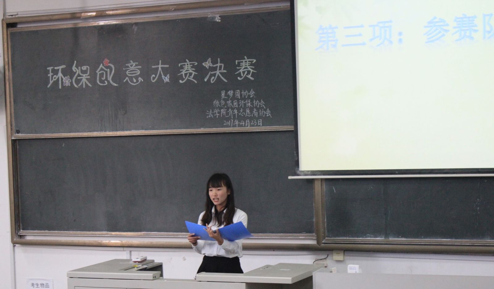 本站讯 4月23日16:30-18:00,pg电子官方网站星梦圆协会、法学院青年志愿者协会和绿色家园环保协会于图西126共同举办以“变废为宝我创新,节能环保我公益”为主题的第二届环保创意大赛。七位特邀评委、进入决赛的参赛选手以及各协会理事团共同参与了本次比赛的决赛环节。活动由星梦圆协会的干事张敏主持。