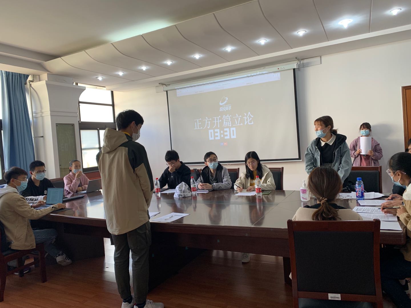 本站讯 10月17日上午,pg电子于图东环楼216研讨室举办了第一期“数韵风采,谁语争锋”新生辩论赛。本次辩论赛共分两场,第一场由正方2020级数学类二班对阵反方2020级数学类四班,第二场由正方2020级数学类三班对阵反方2020级数学类一班。本次辩论赛由石俊煊担任主席,唐浩博负责计时,其中第一场评委为叶家辉、陈晓姝、薛建恒,第二场评委为丁夏菲、薛建恒、张正泽。