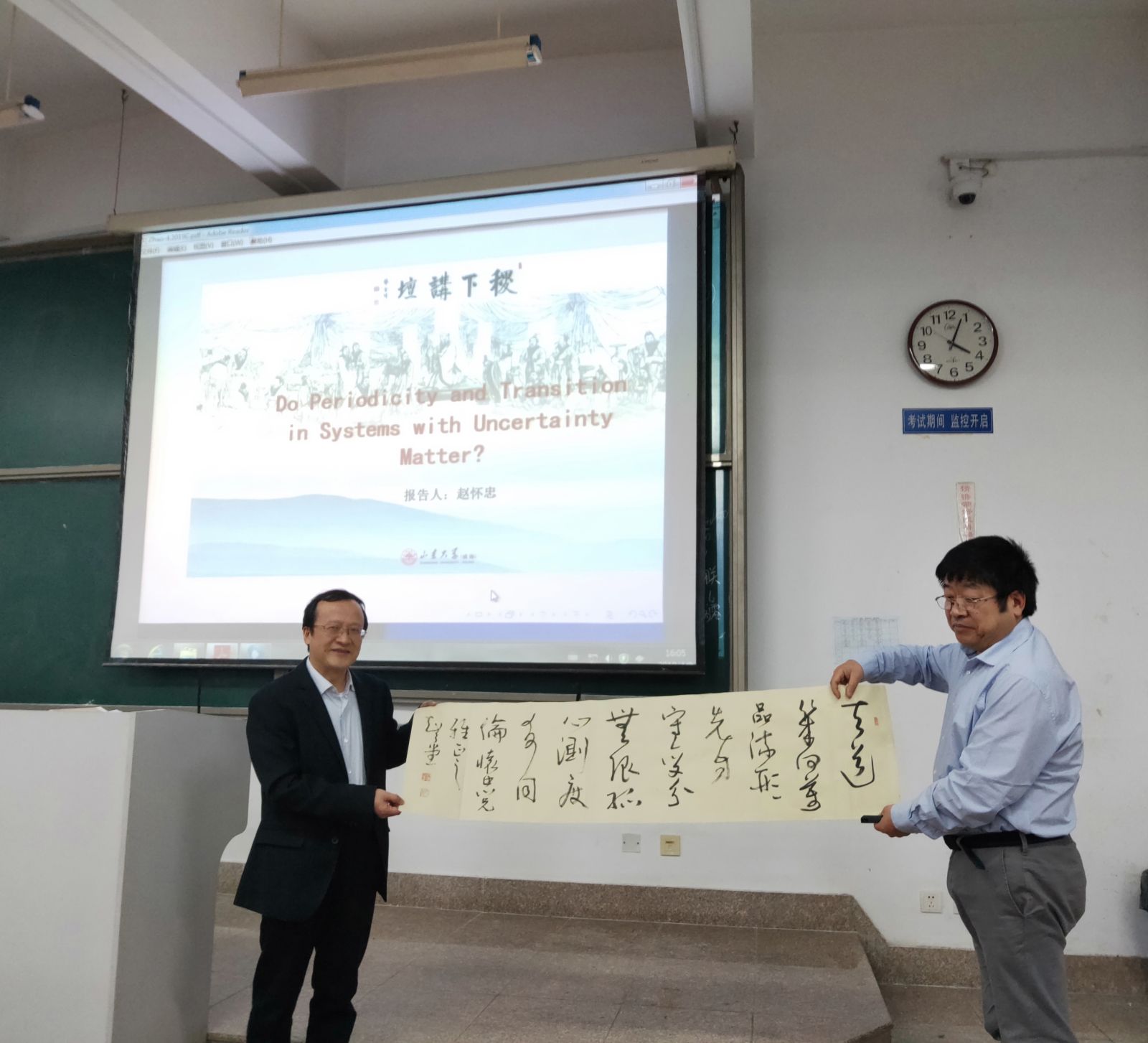 讲座中,赵怀忠首先介绍了概率论以及随机分析的相关基础知识,包括随机过程、随机控制等,这是深入学习的前提和基础。接着他引入了此次讲座的主题,讲解了随机周期路径的概念。随机周期性在现实世界中是普遍存在的,但由于缺乏数学理论,人们对此类现象的认识还有限,赵怀忠为此提供了相关理论并用数学语言描述了随机周期性,并向大家介绍了周期系统、不变测度等概念。最后,赵怀忠表示,此理论适用于模拟冰河时代和间冰期之间的变迁,并证明了噪声驱动的周期双井势问题周期测度的存在唯一性。他认为,这个结果可以为气候的必要“转变”提供一个随机共振物理理论的数学严密性。