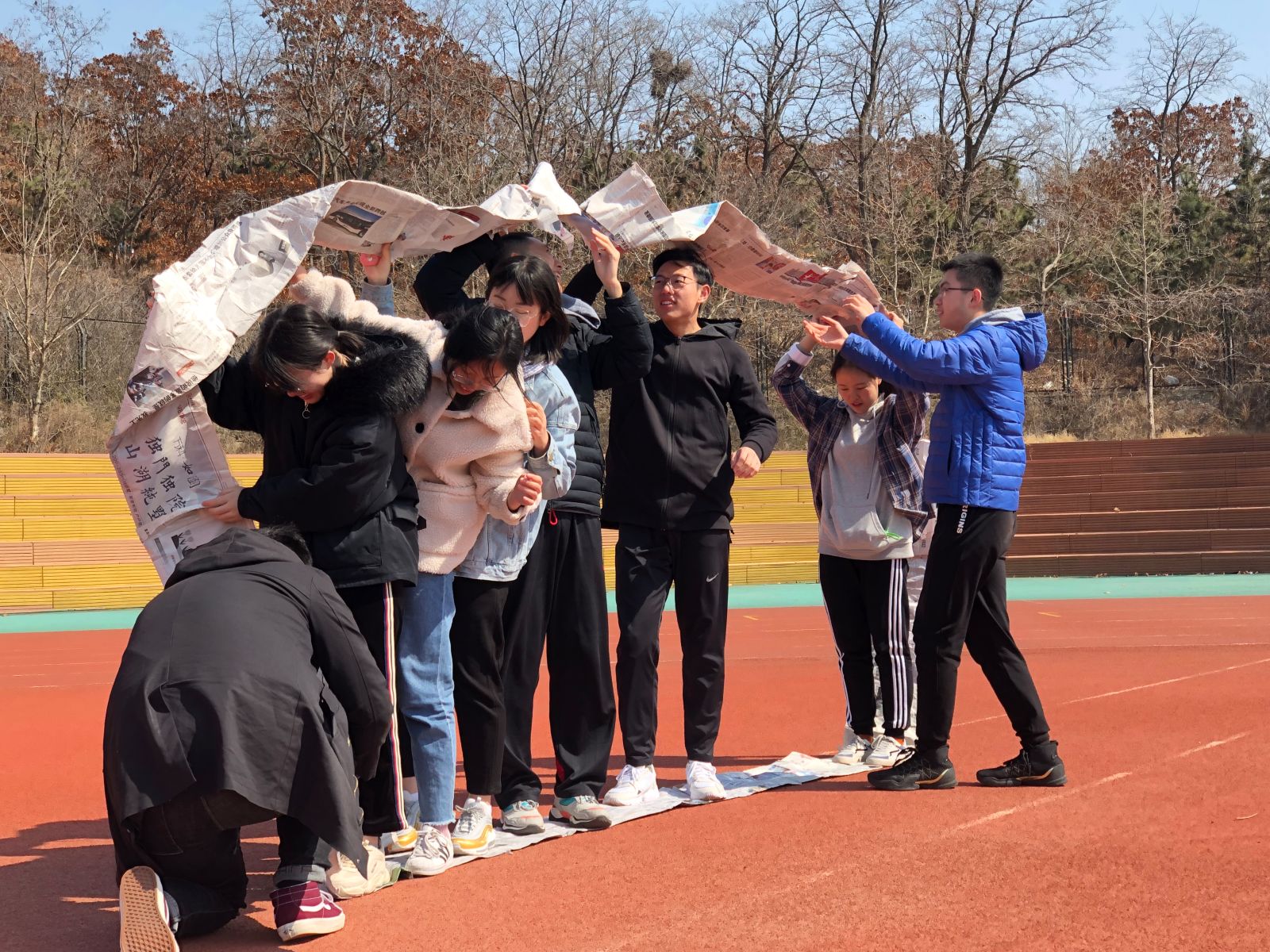 两日的比赛项目包括个人赛“手脚并用跳房子”、“快到碗里来”和团体赛“送信”、“不倒森林”和“旋转风火轮”。个人项目中,每位参赛选手都投以饱满的热情。其中,在“手脚并用跳房子”活动,2018级信息与计算科学班的同学以8秒63的好成绩夺冠,“快到碗里来”活动中2018级数学与应用数学班同学以56秒74夺魁。团体赛的“送信”项目中2018级信息与计算科学班和2018级统计二班的共5名同学以1分06秒夺得头筹;在通力合作的“不倒森林”项目中,各队旗鼓相当,最终2018级信息与计算科学班、2018级数学与应用数学班和2018级统计二班的十名同学共同以26秒09取得第一;而在压轴的“无敌风火轮”项目中,2018级信息与计算科学班、2018级统计二班及2016级统计二班的同学完美配合,终以17分26秒54的成绩斩获冠军。