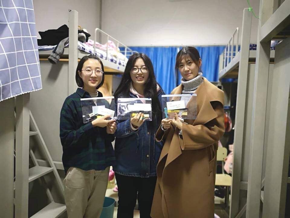 在走访中,辅导员王祎璠鼓励考研同学调整心态,保持信念,以积极的状态面对考研,同时叮嘱同学们在最后阶段,一定要注意饮食、保证睡眠,并预祝各位同学考研顺利。王祎璠与2015级班长、团支书为考研学子们送上学院精心准备的“考研加油包”,其中包括各类考试专用文具:涂卡笔、橡皮擦、签字笔、小刀、胶棒等,同时还有辅导员亲自写下的寄语卡片,传达学院的心意和祝福。考研同学对学院的关怀表示感谢,希望通过努力考取理想学校。
