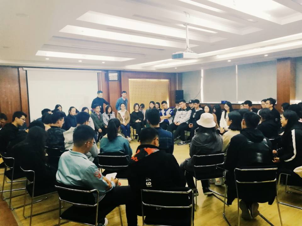 活动中,孙磊介绍了第一次成长营的意义,强调了对于每位学生干部的重要性,旨在轻松活泼的氛围让每个人都能够有所收获和成长。团体辅导以游戏形式来让各位学生干部认识彼此,带动氛围,让每位同学得以投入参与进来。第一个游戏,以分组的形式来进行,共十五分钟,每组发牌员将扑克牌随机发给每人,拥有相同数字的要快速说出彼此的名字,答慢者得到对方的牌,结束持牌最多者为最后一名,并每组派一位代表发言,每组代表不仅对于游戏的技巧做出总结,更能联系生活和工作,有所感悟。第二个游戏,则分为两组,一组对于“如何调动同事和同学们的积极性”每人进行半分钟发言,另一组则一一对应作为观察者,观察第一组每位发言者的语言动作等细节,发言结束后,观察者中两位组长把对应发言人的仔细观察进行了总结,讲解了以游戏为基石,更高效培养学生干部,游戏中又含有深刻意义,激发同学们勇于以各种创新的形式,高效的开展工作,强调作为学生干部,要时刻注意自己的言行,高标准,严要求的规范自己,不忘为同学们服务的宗旨。
