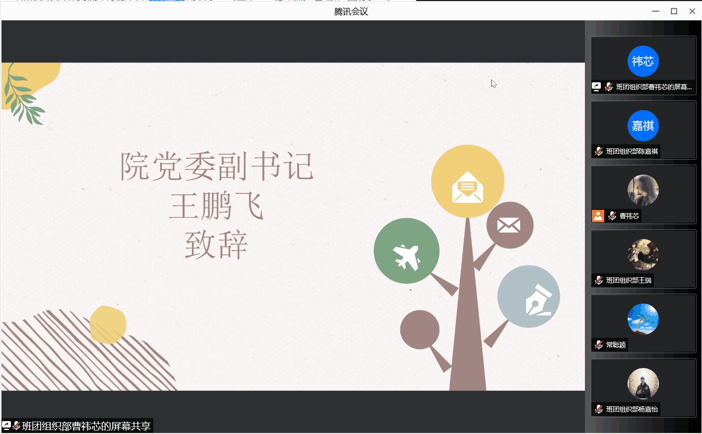 本站讯 10月10日上午,pg电子官方网站通过腾讯会议举办2021年秋季学期学生干部成长营开营仪式。学院党委副书记王鹏飞,团委书记孙磊,辅导员王紫山、王祎璠、魏佳佳、赵宇轩,学院学团中心相关学生,2020、2021级全体班委在线参加会议。
