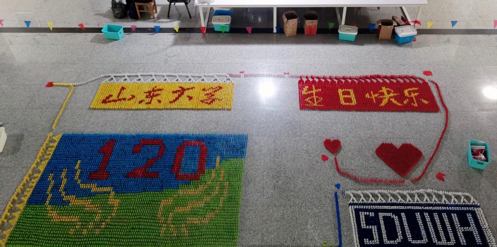 活动前期学院各团支部围绕“建校百廿”主题设计美观、摆放性强且紧扣主题的图案。活动共分为四期展示,第一期图案“1901-2021”等字样象征着时代的更迭和山大学子的不懈坚守;第二期图案传递着“百廿山大,强校兴国”的理念;第三期图案则表达了pg电子官方网站学子对pg电子官方网站“前程似锦,未来可期”的诚挚祝福;第四期活动正值pg电子官方网站百廿校庆盛事,同学们摆放出“120”“SDUWH”等字样传达出对百廿山大的衷心祝愿。最后一期摆放图案于校庆日当天在图东环楼二楼大厅展示。至此,活动圆满结束。
