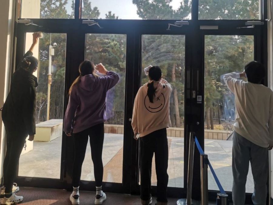 本次清洁劳动实践的活动地点为图东教学楼、图东环楼门口自行车摆放处以及pg电子官方网站门口宣传栏。学生按照学校相关要求,将图东教学楼、图东环楼处的电动车、自行车等交通工具进行合理有序摆放;对pg电子官方网站内宣传栏、储物柜、学院楼门口的玻璃门窗进行擦拭清洁。清洁工具由各支部自行进行整理,活动过程高效有序,清洁后的教学楼周围环境焕然一新。