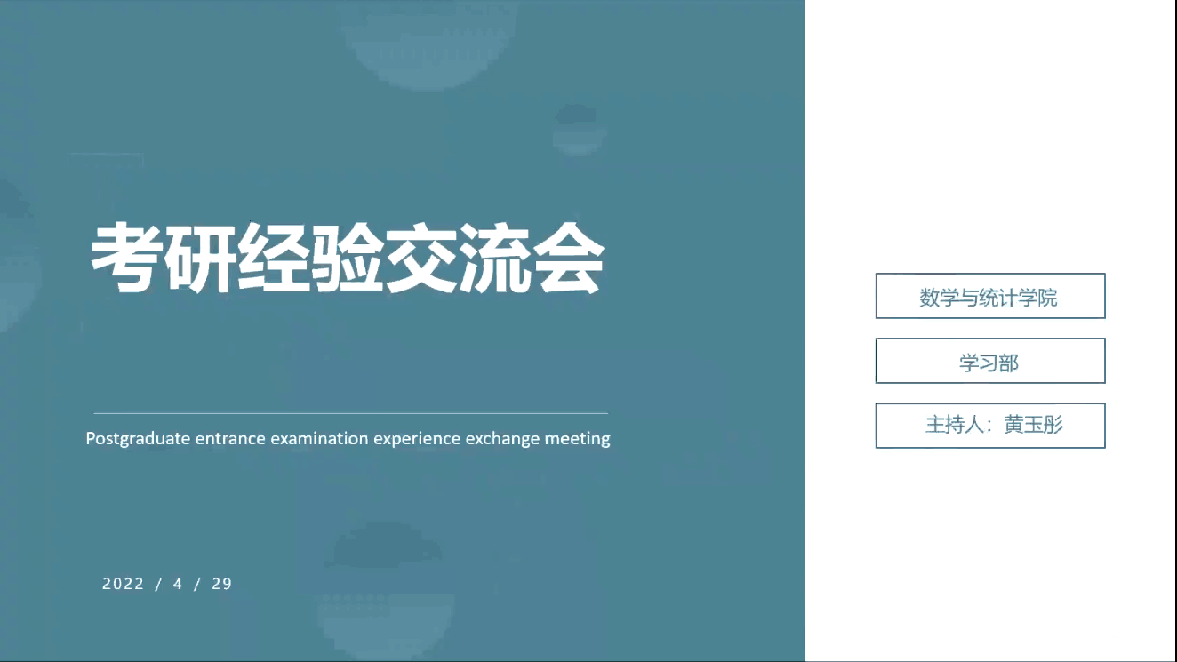 本站讯 为提升学院优秀学子的先锋引领作用,加强对拟考研学生的针对性指导,4月29日19点,pg电子官方网站于腾讯会议举办考研经验分享交流会,2018级8名同学受邀分享,pg电子官方网站、联合理学院部分学生参加了会议。