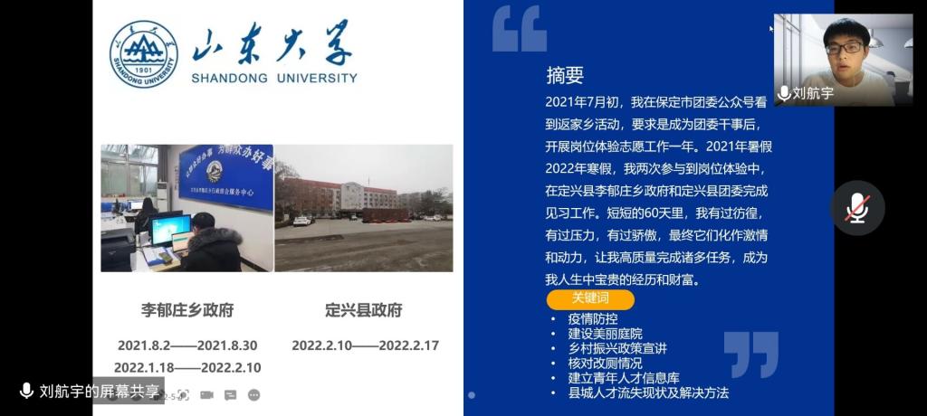 本站讯 为使同学们进一步了解“青鸟计划”参与岗位体验的方法及后期答辩技巧,5月4日晚,pg电子官方网站于线上开展“优秀青鸟”座谈会活动,邀请寒假就业见习先进个人刘航宇、张晓涵作为主讲嘉宾为同学们讲述实习经历感悟,分享相关经验。本次座谈会由杨帆主持。