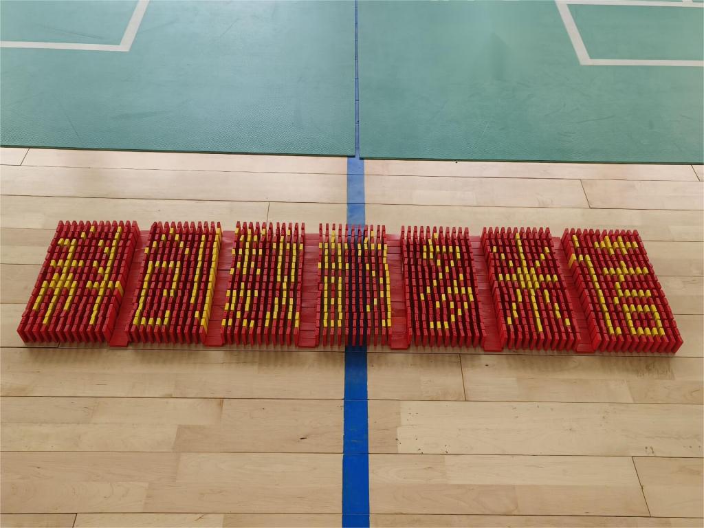 多米诺骨牌是一项集动手、动脑于一体的运动,一幅图案由成百上千张骨牌组成,不仅考验学生的体力、耐力,还需要充分调动同学们丰富的想象力、创造力和团队协作的能力。本次数学多米诺骨牌大赛的成功举办,从智育、美育层面促进了学生发展,为传播数学知识、弘扬数学文化打下了坚实基础。
